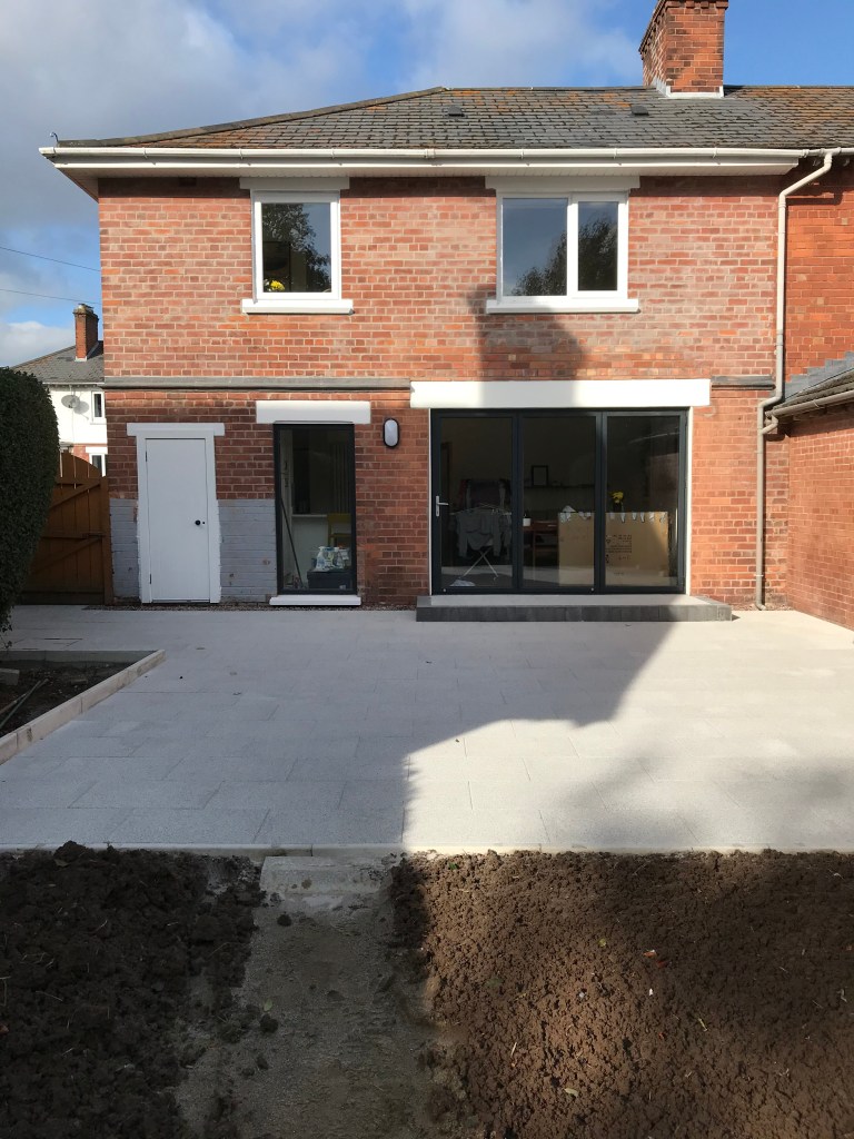 A new patio and back step was installed, giving a modern and distinct feel to the space. RBC laid the slabs on a bed of compacted gravel and mortar mix, ensuring many years of stability. A careful levelling of the site ensures puddles don’t form and rainwater clears either to the grass or the drains.