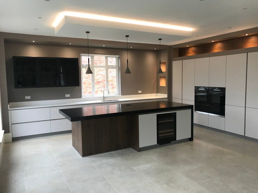 RBC delivered every stage of this project in connection with Parkes Interiors who supplied and fitted the kitchen to a very high standard. RBC’s work included removing the floor, re-tiling, rewiring the kitchen in preparation for the new units, building partitions for the kitchen units, installing plumbing to spec for the new kitchen and appliances. RBC took ownership of the final finished space, ensuring all electrics, plumbing, tiling and paint finishes were completed to an extremely high standard.